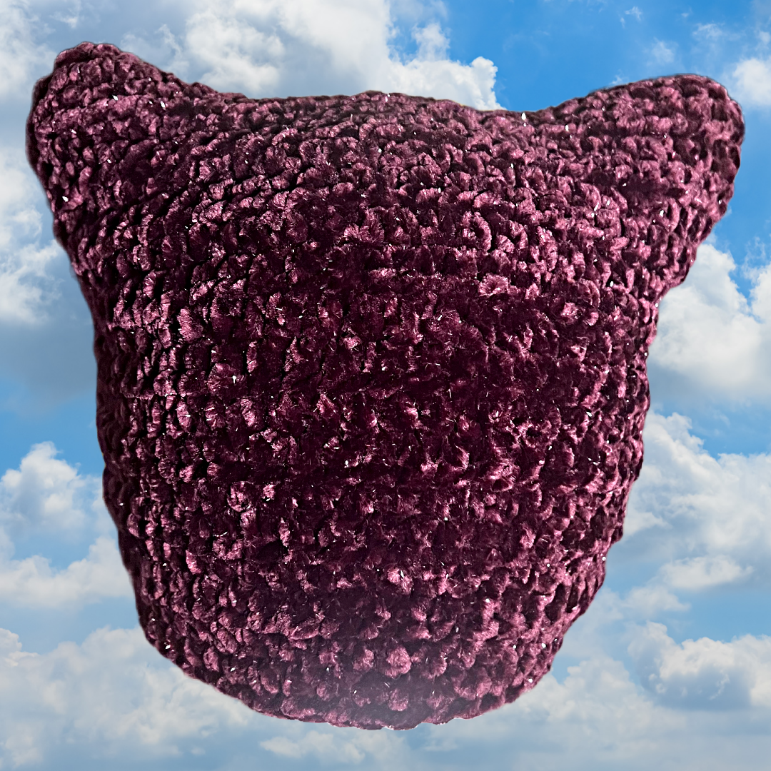 The Juicy Kitty Hat in [BURGUNDY] is a soft, sparkly, serve. Warm and comfortable, it is perfect for cat lovers and fashionistas alike!